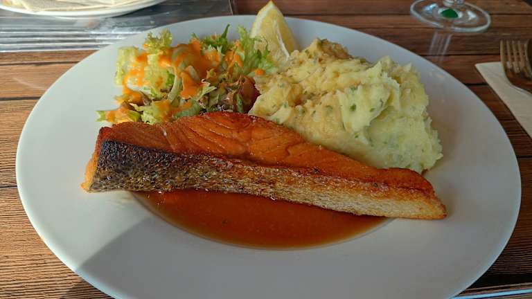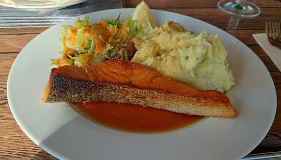 Wir wurden vom ganzen (jungen) Team sehr freundlich bedient. Das Essen war superlecker und frisch. Wir hatten Rump Steak , Kinderspaghetti, Ofenkartoffel mit Räucherlachs und Lachs mit Kartoffelstampf und Teriaki Soße. Wir saßen im hellen , warmen Aussenzelt. Der Preis war völlig gerechtfertigt.
