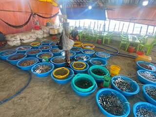 Vier Tage "nur" Badeurlaub im Novotel waren uns zu langweilig. Also machten wir uns früh um 6.00 Uhr auf den Weg zum Fischereihafen von Phan Thiet. Schon der etwa 2 km lange Weg war äußerst interessant, wir sahen eine Straßenfußballmanschft beim leidenschaftlichen Fight, Federball spielende Frauen, proppervolle Garküchen - alles am frühen Morgen. Die Vietnamesen scheinen wohl ein anderes Zeitgefühl zu haben, als wir. Am Fischereihafen schien der größte Betrieb schon vorbei zu sein, aber was wir sahen, hat uns doch sehr stark beeindruckt. So viele Boote, so viele Menschen, so viel Meeresgetier, und das Tag für Tag, bei minimalsten hygienischen Bedingungen. Da bekommt man eine Ahnung, wie groß die Ressourcen des Meeres sind, aber auch , wie bedroht der Fisch- und Artenreichtum der Ozeane ist. Es war sicher nicht der "schönster" Alleingang auf unserer Rundreise, aber auf jeden Fall einer der interessantesten.