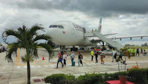 Der nach dem kubanischen Revolutionär Abel Santamaría benannte "Aeropuerto Internacional Abel Santamaría" (IATA-Code: SNU, ICAO: MUSC), der Flughafen von Santa Clara, liegt nördlich der Stadt. Er hat ein Terminal, über das sowohl der internationale als auch der nationale Verkehr abgewickelt werden. Die asphaltierte Start- und Landebahn ist 3.017 Meter lang und 45 Meter breit. Derzeit gibt es noch keine Fluggastbrücken, sondern der Ein- und Ausstieg in die Flugzeuge erfolgt über mobile Treppen. Seit seiner Eröffnung werden Ziele in Europa und Kanada im Charter- und Linienverkehr angeflogen. In dem Terminal gibt es einen kleinen Duty Free Shop, eine Snackbar, eine Autovermietung und eine Wechselstube. Der Flughafen wird auch vom kubanischen Militär genutzt. Parkplätze sind vorhanden. Der Flughafen ist mit öffentlichen Verkehrsmitteln derzeit (2017) nicht erreichbar. Homepage: http://santaclara.airportcuba.net/