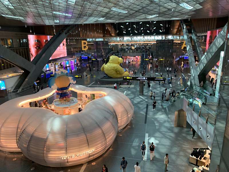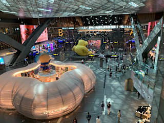 Der Flughafen in Doha ist sehr modern und funktional.Es gibtzahlreiche Baüme,wie einen Wald.Mehrere Läden warten auf Kunden,auch hochpreisige Geschäfte.Für einen längeren Aufenthalt im Transitbereich kann man sich dort gut aufhalten.Es gibt sogar einen Zug.