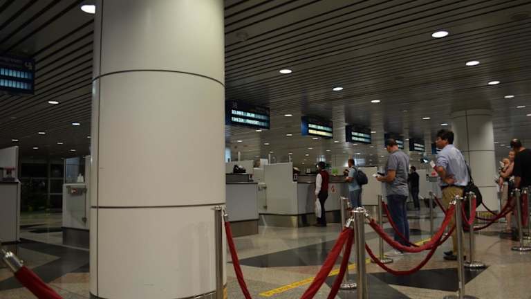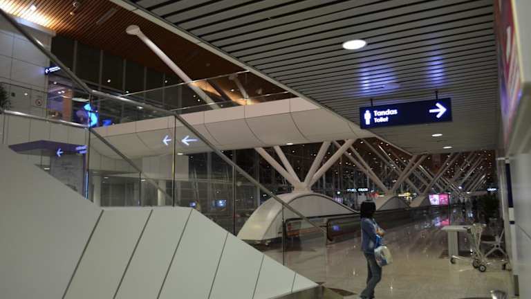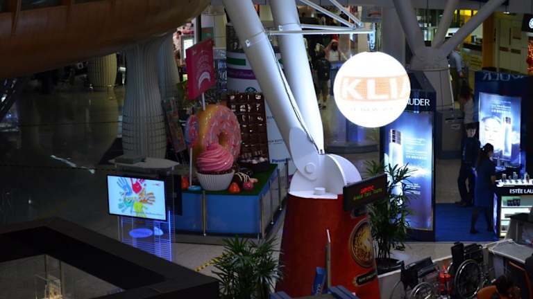 Der Flughafen von Kuala Lumpur ist über eine recht schnelle Railway an die Stadt angebunden, liegt aber doch recht abseits. Bei kurzen Umsteigezeiten kann man nicht eben schnell in die Stadt fahren. Der Flughafen ist relativ modern, mit Wartehallen mit Grossbildfernsehern und auch einigen Shops. Von hier werden sowohl die Überseeflüge als auch die vielen Inlandsflüge abgewickelt.