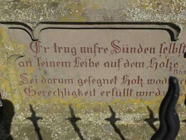 Flurkreuze sind in Deutschland besonders häufig in katholischen Landstrichen zu finden. Wegkreuze können Anhaltspunkte für alte Wallfahrtswege oder Prozessionswege sein. Gegenwärtig werden Flurkreuze von der Denkmalpflege zu den Kleindenkmalen gezählt. Das Flurkreuz am Neckarweg ist ein sogenanntes Becken-Kreuz. Es wurde von Anastasie und Johann Gramer 1867 errichtet. Es ist eine Steinsäule. Im unteren Bereich die Inschrift: Er trug unsere Sünden selbst an seinem Leibe auf dem Holz. Darüber die Skulptur von Maria. Ganz oben ein Steinkreuz, an welchem Jesus hängt. Um das Denkmal ist ein Eisengitter aufgestellt. Das Denkmal ist hinter dem Eutinger Friedhof. Adresse: Neckarweg, 72184 Eutingen im Gäu Geodaten: FPFX+57 Eutingen im Gäu