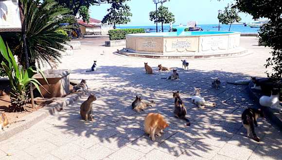 Der Forodhani Park liegt direkt an der Promenade am Meer und teilt sich in zwei Hälften. Auf der einen Seite mit viel Grün, Bänken und Möglichkeit der Ruhe und Entspannung. Auf der anderen Seite eine große Freifläche die tagsüber als allgemeiner Treffpunkt für Einheimische, Touristen, Guides, Undercover Polizisten, Katzen u.a. gilt und sich dann ab 17 Uhr zum Food Nachtmarkt wandelt. Man kann hier wirklich alles probieren, was die sansibarische Küche hergibt. Dazu muss man jedoch wissen, dass es eigentlich sehr günstige Festpreise gibt, diese aber nicht primär offen gezeigt werden. Als Neuling sollte man niemals den erstgenannten Preis akzeptieren, sondern sich die unterm Ladentisch befindliche Preistafel zeigen lassen. Am Rande des Food Marktes, neben dem Meeting Point Café, zeigen die „Klippenspringer“ allabendlich ihre Sprungkünste. Zwar nicht so spektakulär wie in Acapulco, aber durchaus unterhaltsam und immer gut besucht, sowohl von Einheimischen als auch von Touristen.