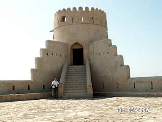 Das Fort steht sowie die Moschee direkt neben dem Meer. Suwaiq ist ein kleines Fischerdorf und war früher ein sehr wichtiger Hafen wie Barka oder Sohar. Am Strand findet in der Früh ein Fischmarkt statt. Das Fort ist ca, 300 Jahre alt, es wurde in den 90 Jahren renoviert. Oben auf dem Turm kann man durch die Zinnen auf den Souq sehen.