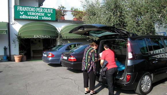 Seit nunmehr fast 20 Jahren kaufe ich mehr oder midner regelmäßig bei Veronesi "mein" Olivenöl. So auch dieses Jahr wieder. Aus einem kleinen Verkaufsladen mit 2 - 3 Ölsorten, etwas Balsamico sowie Eingelegte Gemüse in Öl und feine Olivenölpasten dazu etwas Wein und Grappa hat sich im Laufe der Jahrzehnte ein ansehnliches Ladengeschäft entwickelt mit einem weiter gefächerten Angebot. Es gibt nunmehr viel mehr Sorten Olivenöl (natives, einfaches, aromatisiertes alles in mehreren Sorten), verschiedene hauseigene Balsamico (man sollte sich wirklich einmal durchprobieren), noch mehr Olivenölpasten, eingelegte Gemüse, Nudeln, Risotto, Grappa in großer Auswahl, ebenso Wein und andere Spirituosen, Marmeladen, Honig und Olivenölkosmetik. Fast alles kann gekostet, erschnuppert und ausprobiert werden und die Preise sind der ausgezeichneten Qualität der Produkte angemessen. Das einzige Manko des geschäfts ist, dass die Deutschkenntnisse der Mitarbeiter leider sehr mager sind und dass man auch mit englisch nicht wirklich weiter kommt. Es helfen also nur Hände, Füße und rudimentäre Kenntnisse der italienischen Sprache. Einen ersten (wenn auch beschränkten) Eindruck kann man sich übrigens auch auf der Homepage verschaffen (es gibt auch eine deutsche Version).