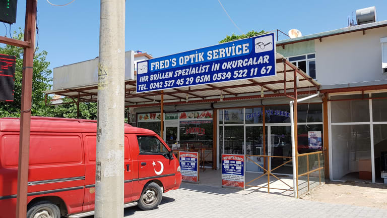 Das Optikgeschaeft liegt im Ortskern von Okurcalar,an der Hauptstrasse von Alanya nach Antalya gegenüber dem Orange County und Granada Hotel und wird von vielen Stammkunden frequentiert.Es besteht auch die Möglichkeit des Post- versandes! Da jeder Kunde individuell beraten wird oder falls nötig zu einer Augenuntersuchung begleitet wird ist eine Terminvereinbarung unter der Rufnummer 00905555023025 angebracht! Sie werden auch vom Hotel abgeholt und zurück gebracht! Alle Brillenfassungen und Glaeser sind mit Herstellergarantie versehen!Die Öffnungszeiten sind taeglich ab 9.30 Uhr bis ? nach Bedarf Die Anschrift lautet: Fred's Optik Service Okurcalar Mah. Alparslan Türkeş Bulvari No.:226/Z-02 TR-07415 Alanya email:fredsoptik@gmail.com Handy:00905555023025 Handy:00905345221167 (für Terminvereinbarungen u.Auskünfte) Mitglieder von Holidaycheck erhalten 15% Rabatt auf Brillenfassungen und 20% auf Glaeser!