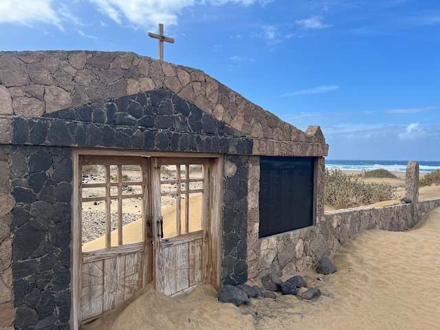 Direkt beim Parkplatz am Playa Cofete ist der Friedhof von Cofete. Er besticht durch ein schönes Tor. Direkt am Strand gelegen.