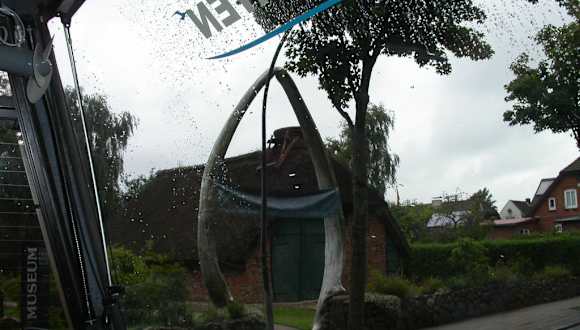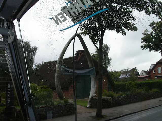 In Wyk auf Föhr gründete 1908 Dr. Carl Häberlin das Friesenmuseum, und ist damit eines der ältesten Heimatmuseen Deutschlands. Dieses Museum liegt an der Straßenecke Rebbelstieg und Museumstraße und ist eine überörtliche Sehenswürdigkeit. Zur Straße hin, wird das Grundstück -wie sollte es anders sein-, durch einen Friesenwall begrenzt. Betritt man das Museumsgelände, geht man durch einen gewaltigen, aus Blauwalunterkieferknochen hergestellten Torbogen. Gleich zur rechten Hand befindet sich eine Scheune, vorne auf das Dach, hat man vor wenigen Tagen eine Nisthilfe für Störche angebracht, denn eine Straße weiter, liegt der Mühlenpark, und dort auf einem hohen Mast, zieht gerade ein Storchenpaar zwei Junge groß. Vermutlich wird eines der jungen Störche mal dazu animiert, sich auf dieser Scheune ein Nest zu bauen. Entlang des Gartenweges und in den Beeten, verteilt auf dem gesamten Museumsgelände, stehen 70 verschiedene Rosenpflanzen die einen sehr wohlriechenden Duft verbreiten. An jeder Rosenpflanze steckt in der Erde ein Schild, darauf ist der Rosenname zu lesen. Das Museum selber zeigt seine Sammlungen in den Abteilungen der Vor- und Frühgeschichte der Insel Föhr, Geologie und Landschaftsgeschichte, Kultur-und volkskundliche Sammlungen sowie Seefahrt und Fischfang, wobei der Walfang eine breite Palette einnimmt. Nach dem Niedergang des Walfanges, begann die Auswanderung von Föhr, hierüber gibt es Dokumente, Fotos und Auswandergepäck, aber auch kostbare “Föhringer” Trachten zu sehen, insgesamt sind es wohl ca. 8-10 Räume die man besichtigen kann . Zwischen den beiden Häusern und der Scheune steht eine Bockwindmühle von der Hallig Langeneß. Im Freigelände steht auch das älteste datierte Haus der Insel von 1617, dieses ist mit Hausrat und landwirtschaftlichem Geräten vollständig ausgestattet. Hier waren Handwerker noch dabei, den Dachstuhl sowie den Spieß mit Reet neu einzudecken. Auch wurden auf dem Gelände die Grabkammer eines Steinzeitgrabes nachgebildet. Von diesen “Hünengräbern” sind noch einige bei Utersum, dann mehrere bei Hedehusum -im Original- vorhanden und zu sehen. Bei Goting liegt der Grabhügel “Thinghugh” und noch ein kleinerer gegenüber. Vorne an der Straße, in dem Schaukasten sind die Öffnungszeiten, aber auch die besonderen Aktivitäten und Veranstaltungen des Museums zu lesen. Selbst bei Sonnenschein kann ich einen Besuch des Museums, nicht nur mit Kindern empfehlen.