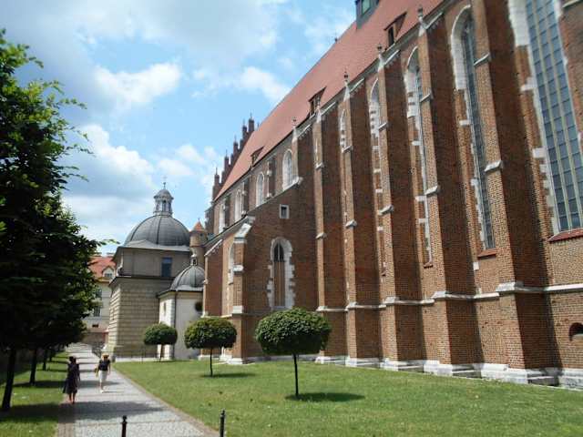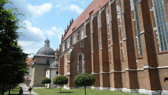 Südlich des Burgbergs Wawel wurde um 1340 von Kasimir dem Großen die neue Stadt Kazimierz gegründet, die später das jüdische Viertel beherbergen sollte und heute ein Stadtteil von Krakau ist. Als Pfarrkirche für die Stadt Kazimierz stiftete der König die Fronleichnam Basilika, die dann bis 1405 im Stil der Backsteingotik weiter ausgebaut wurde. Wie viele andere Kirchen in Krakau wurde auch diese im 17. Jahrhundert barockisiert. Zu den zahlreichen Kunstwerken, die in verschiedenen Kunstperioden angesammelt wurden, zählt u. a. auch das Gemälde der Krakauer Madonna von Lucas Cranach dem Älteren.