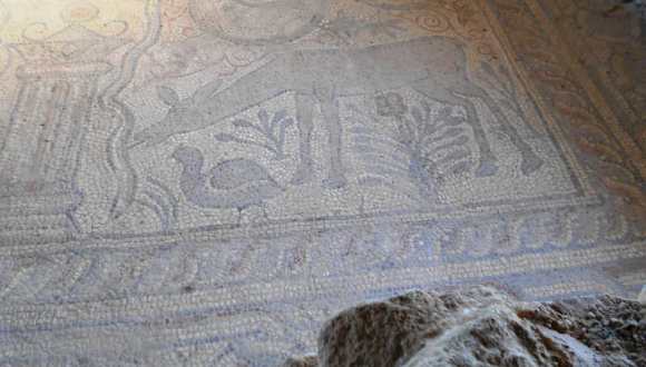 Unmittelbar am Strand wurden die Überreste einer kleinen, im 5. Jahrhundert errichteten frühchristlichen Kirche ausgegraben und sehr schöne Mosaiken freigelegt. Das zentrale Thema der recht gut erhaltenen Mosaiken sind Rehe in einer himmlischen Landschaft. Die Ausgrabung befindet sich einige Kilometer südlich von Kallithea in Solinas. Es wird vermutet, dass die Kirche einst zu einer heute nicht mehr bestehenden Siedlung in der Nachbarschaft gehörte.