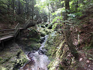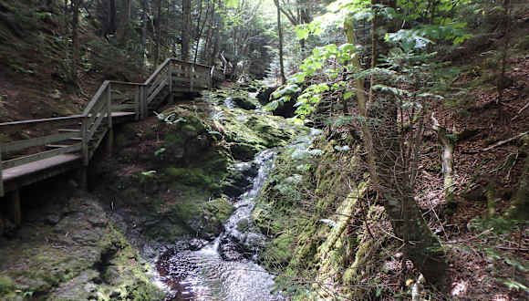Der seit 1948 bestehende Fundy Nationalpark wird durch etwa 120 Kilometer gut ausgebauter Wanderwege verschiedener Schwierigkeitsgrade erschlossen, die alle gut ausgeschildert sein sollen. Einen Plan kann man u.a. beim Informationszentrum am östlichen Parkeingang bei Alma erhalten. Die Wanderungen sollen alle durch eine sehr abwechslungsreiche Landschaft führen. Da wir den Park im Rahmen einer Ostkanada-Rundreise besuchten, hatten wir nur Zeit für den Rundweg zu den Dickson-Wasserfällen. Die von vielen Treppenstufen geprägte Piste verlief entweder auf natürlicher Erde oder über Bohlen auf und ab durch das Gelände. Diese ist u.E. nicht geeignet für Wanderer mit Gelenkproblemen. Außer einem Eichhörnchen haben wir leider keinerlei Tiere gesehen.