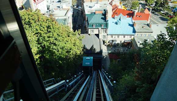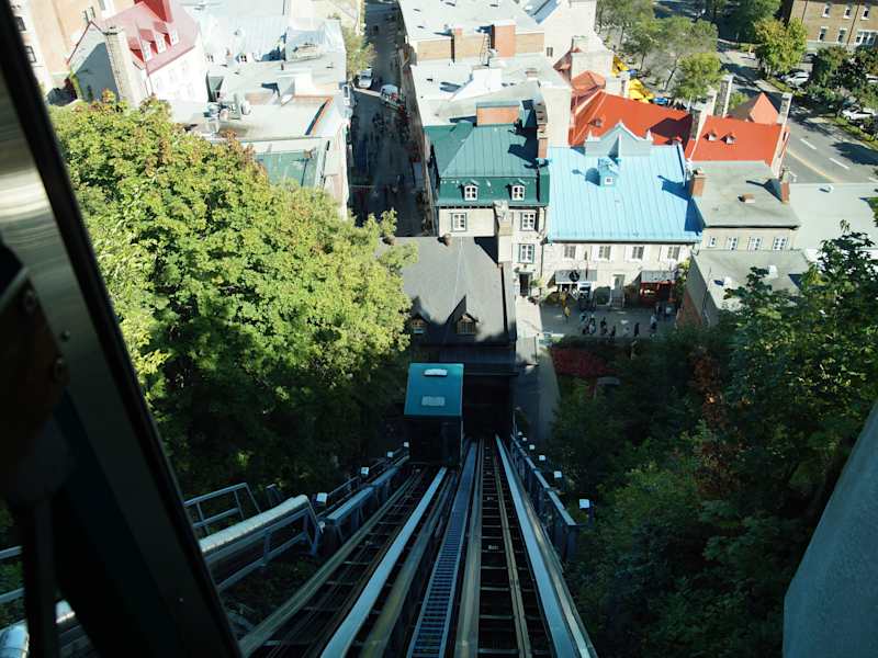 Die Standseilbahn "Funiculaire du Vieux-Québec" verbindet das Quartier Petit Champlain in der Unterstadt mit der Dufferin-Terrasse in der Oberstadt von Québec. Der erste Schrägaufzug an diesem Ort wurde im Jahr 1879 von William Griffith als Wasserballastbahn errichtet und 1907 elektrifiziert. Nach einem Großbrand am 2. Juli 1945 wurde die stark beschädigte Bahnanlage restauriert. Die Standseilbahn wurde 1998 auf dem neuesten Stand der Informationstechnologie fast komplett neu gebaut. Die zwei unabhängig voneinander auf der doppelspurigen Strecke fahrenden Kabinen überwinden auf ihrer 64 Meter langen Fahrt einen Höhenunterschied von 59 Metern. Am Fuß der Standseilbahn befindet sich ein Souvenirgeschäft. Betriebszeiten und Fahrpreise siehe Homepage: https://www.funiculaire.ca/