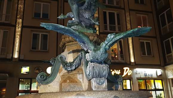 Gänsediebbrunnen im Kneipenviertel Weiße Gasse
