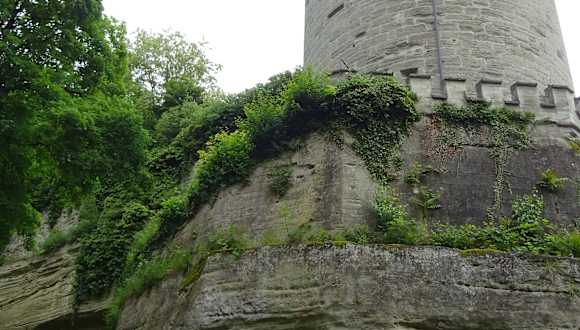 Der Gallerturm thront markant auf einem Felsvorsprung. Seinen Namen hat er offenbar von einem Frauenkloster, welches zum Bau des Turms im 16. Jahrhundert weichen musste. Anscheinend handelt es sich um den frühesten runden Wehrturm nördlich der Alpen. Imposante Sehenswürdigkeit und tolles Fotomotiv für uns.