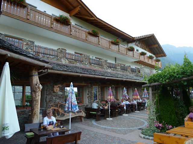 Das Gasthaus Happichl liegt unterhalb des Panoramaweges Partschins-Naturns in Halbhöhenlage mit einem tollen Ausblick auf die gegenüberliegende Talseite.Bei gutem Wetter wird im Hof bewirtet,aber auch die Gasträume innerhalb des Hauses sind rustikal und gemütlich. Die Speisekarte im warmen und im kalten Bereich bietet Umfangreiches an,sowohl in heimischen als auch internationalen Gerichten.Die Preise sind absolut fair gestaltet ,da das meiste aus eigener Produktion kommt. So kostet z.B.ein Viertel Wein 2,20 Euro,ein Vesperbrettel mit Speck und Käse 9,-Euro.Die Menge ist so bemessen,dass ein normaler Esser mehr als satt wird.Ein Gedicht sind die Knödel die weit und breit "Seinesgleichen" suchen. Was im Happichl angeboten wird ist Spitze,dazu ist das Personal immer in guter Laune was den Aufenthalt in diesem Haus zum Erlebnis macht. Leider hat das Haus immer in der letzten Juliwoche Urlaub.
