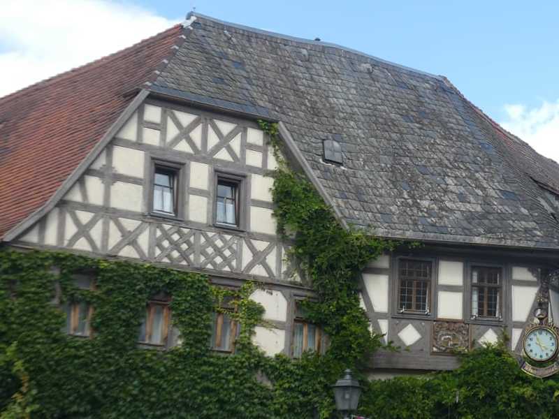 Die Krone (Hotel und Gasthof) ist das größte zusammenhängende Fachwerkgebäude von Lohr. Auf dem Weg vom Alten Rathaus zur Kirche St. Michael sind wir an diesem schönen Fachwerkgebäude vorbeigekommen. Uns hat dieses alte, verschachtelte Gebäude gut gefallen.
