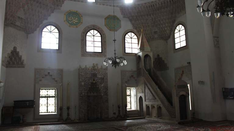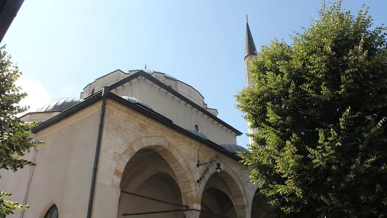 Die Gazi Husrev Beg Moschee gehört zu den wichtigsten Beispielen osmanischer Architektur in Sarajevo. Die Begova džamija, wie sie im Volksmund genannt wird, wurde 1531 nach einjähriger Bauzeit fertig gestellt. Die im frühen klassizistischen Stil errichtete Kuppelmoschee war lange Zeit das größte islamische Gotteshaus in Bosnien und der Herzegowina. Ihr Namensgeber Gazi Husrev Beg, ein Neffe des Sultans Bayezid II, stiftete die Moschee. Sein Grab befindet sich in der größeren Turbe, links neben der Moschee. Deren Minarett ist 47 Meter hoch. Die Kuppel hat einen Radius von 13 Metern. Der Gebetsraum ist mit kostbaren Teppichen ausgelegt und seine Wände mit Koransprüchen und Arabesken verziert. Im Hoff der Moschee steht ein prächtiger Brunnen. Hier vollziehen die Gläubigen die rituellen Waschungen vor dem Gebet. Interessant zu beobachten ist das Treiben beim Freitagsgebet. Da es oft keinen Platz mehr in der Moschee gibt, müssen zahlreiche Gläubige ihren Teppich im Moscheenhof ausbreiten. Die Frauen beten allerdings getrennt von den Männern, hinter Sichtschutz, denn es bis vor einigen Monaten noch nicht gab.