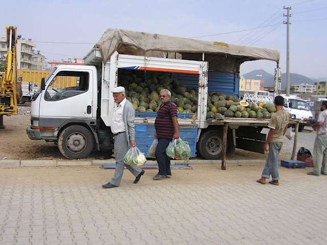 .. den das ist Türkei vor 20 Jahren An einem Freitag ist Markttag in Gazipasa aber nur Gemüse ... die Fahrt von Alanya kostet ca 2 € man fährt mit den Hühnern *g* die Fahrt ist sehr Kurvenreich...