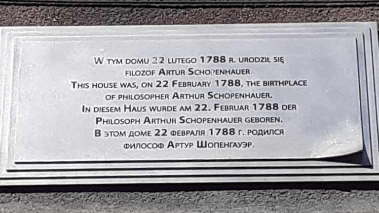 In der Ul. Ducha Świętego 45/47 (Heilig-Geist-Gasse) kam einst Arthur Schopenhauer zur Welt. Er war einer der großen deutschen Philosophen. Das "Original-Geburtshaus" ist zwar nicht mehr vorhanden, aber das Gebäude, das heute hier steht, gilt als dessen Nachfolgegebäude. Das Haus ist zwar nicht besonders azffällig und sehenswert, aber die Tatsache, dass hier Arthur Schopenhauer geboren wurde und seine ersten Lebensjahre verbracht hat, ist einen Abstecher zu diesem Haus in der Heilige-Geist-Gasse wert. An dem Haus ist eine Gedenktafel vorhanden, die in mehreren Sprachen darauf aufmerksam macht, dass hier 22. Februar 1788 das Licht der Welt erblickte. Gestorben ist Schopenhauer am 21. September 1860 in Frankfurt am Main an den Folgen einer Lungenentzündung.