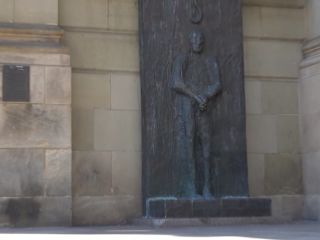 Ein großes Wandrelief wurde 1993 für den ehemaligen Staatspräsidenten Eugen Bolz eingeweiht. Es steht am Königsbau. Es ist ein Werk von Alfred Hrdlicka. Die Bronzefigur zeigt einen Mann, darüber ein Hinrichtungsbalken und eine Schwurhand. Aufgrund seines Einsatzes im Widerstand wurde Eugen Bolz 1945 enthauptet. Adresse: Eduard-Pfeiffer-Straße 92, 70192 Stuttgart Webseite: https://friedens - stuttgart.de/ Geodaten: Q5QF+9J Stuttgart