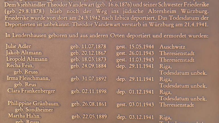 Infos Gedenktafel für die jüdischen Mitbürger aus Lendershausen