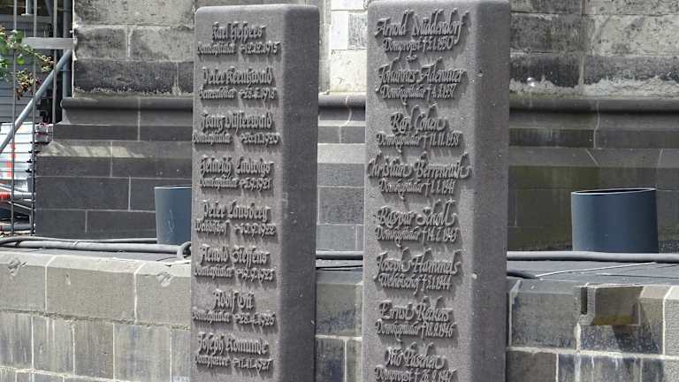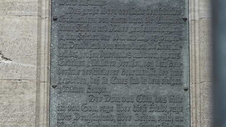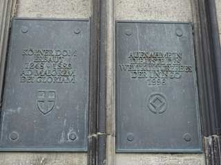Beim Kölner Dom befindet sich am Dom auf der Papstterrasse (beim Roncalliplatz) eine Gedenktafel für Papst Johannes XXIII., der mit bürgerlichem Namen Angelo Giuseppe Roncalli hieß. Angelo Giuseppe Roncalli wurde am 25.Nov. 1881 geboren, er war ab 28. Oktober 1958 der 261 Papst der Katholischen Kirche und er übte das Papstamt bis zu seinem Tod am 3. Juni 1963 aus. Auf dieser Gedenktafel kann man Daten und Stationen aus seinem Leben. nachlesen. Papst Johannes XXIII. wurde am 3. September 2000 durch Papst Johannes Paul II. selig gesprochen und am 27. April 2014 durch Papst Franziskus heilig gesprochen. Wenn man am Roncalliplatz ist, so bietet es sich durchaus an, dass man sich auch einmal diese Gedenktafel für Papst Johannes XXIII. anschaut.