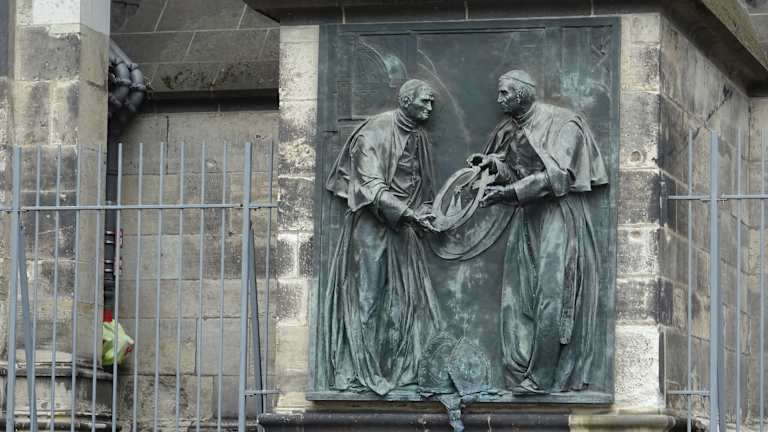 Am Roncalliplatz, der nach Angelo Giuseppe Roncalli, dem späteren Papst Johannes XXIII. benannt ist, findet man am Dom eine Gedenktafel für eben diesen Papst.