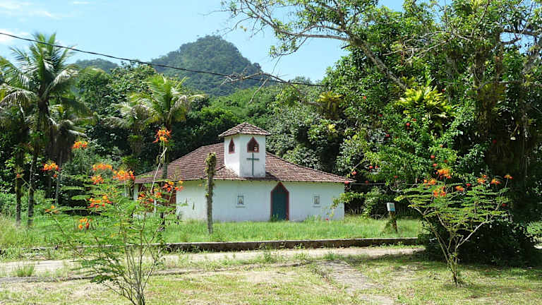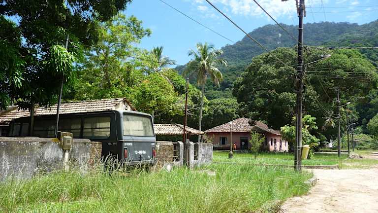 Dem ehemaligen Gefängnis im Süden der Insel verdankt die Ilha Grande seine jetzige Unberührtheit. Leider sind vom Gefängnis nur mehr ein paar Ruinen stehen geblieben, der Rest wurde im Jahr 1994 gesprengt. Aber die Siedlung der früheren Gefängnis-Angestellten steht noch. Am westlichen Ende ist eine Filiale der Universität von Rio de Janeiro untergebracht, die das angrenzende Naturschutzgebiet betreut und überwacht. Man wird beim Betreten des ehemaligen Gefängnisgeländes registriert, der Eintritt war aber frei und man konnte sich frei bewegen. Gerade der Kontrast zwischen der paradiesischen, tropischen Landschaft und der eher tragischen Vergangenheit dieses Ortes ergibt eine eigene Stimmung, die dieses Tal für uns interessant machte. Das und der angrenzende wunderschöne Praia Dois Rios lohnen den schweißtreibenden 8 km Marsch (pro Richtung) hierher. Es gibt zwei kleine Bars in der Kolonie, aber trotzdem für die Wanderung genügend Wasser mitnehmen.