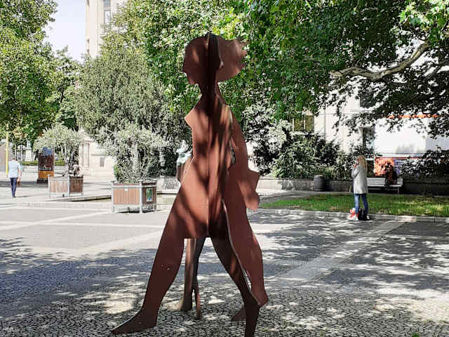 Die Plastik am Georgsplatz stellt eine Wanderin und ein Wanderer in einer Skulptur dar. Je nach Blickrichtung sieht man eine männliche oder eine weibliche Silhouette. Das Werk aus rostigem Baustahl ist Teil eines Kunstprojekts aus dem Jahr 1991, zu dem Studierende des Fachbereichs Bildende Kunst der Fachhochschule Hannover beitrugen.