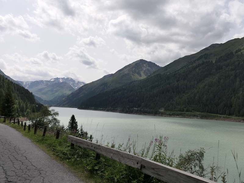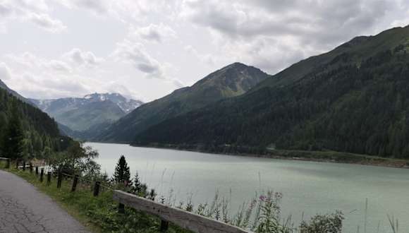 Auf der Gletscher-Panoramastraße immer weiter hinauf … dann erreicht man knapp 10 km nach der Mautstelle den Gepatsch-Stausee. Auf der Hinfahrt wird etwas allerdings immer größer und höher. Die Staumauer bzw. der größte Steinschüttdamm Österreichs. Er ragt beeindruckend vor einem auf und lädt bei dieser Ansicht zu einem Fotostopp ein. Der See hat ein Speichervolumen von 140 Mio Kubikmeter Wasser und produziert 620 Kwh pro Jahr. Wer entlang des Sees wandern möchte, hat beginnend an der Mauer auf Höhe des Cafe Seepanorama auf der westlichen Seite über 9 km die Möglichkeit den See näher kennenzulernen. Besonders schön ist der Blick auf den See auf der Rückfahrt vom Gletscher.