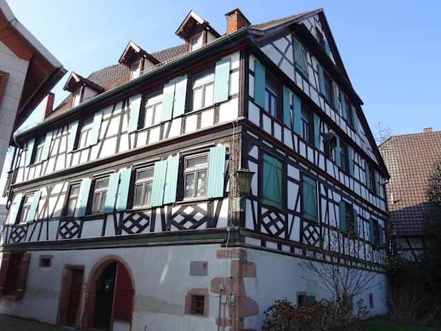 Von der Bachanlage kommend findet man Ecke Gerbergasse/ Löwengasse ein sehr schönes Fachwerkgebäude von 1707. Tatsächlich befand sich bis ins 20. Jh eine Gerberei. Sehr schön ist die Lage direkt am Mühlbach und Stadmauer und der besondere Grundriss des Gebäudes. Schönes Fotomotiv.