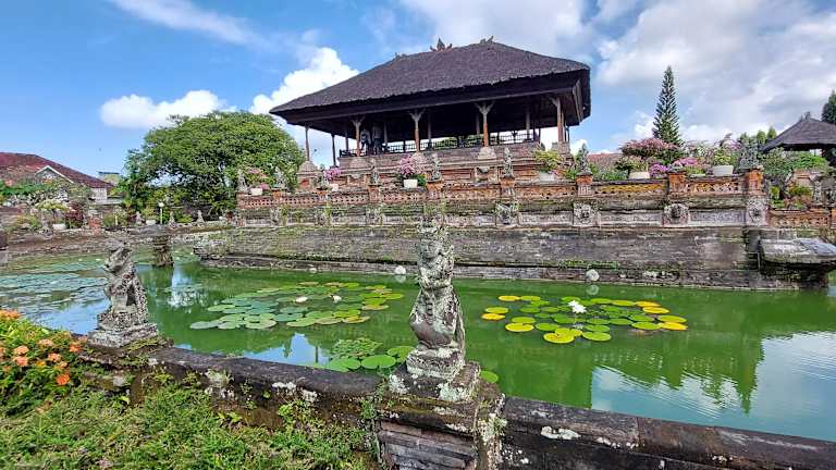 Die Gerichtshalle Kerta Gosa aus dem 18. Jahrhundert, befindet sich in einem sehr gut gepflegten großflächig angelegten Garten mit schön anzusehenden Seerosenteichen. Man könnte gar nicht glauben mitten in der Stadt zu sein. Für die Wand- bzw. Deckenmalereien in dem offenen Gebäude, wäre es empfehlenswert jemanden dabei zu haben, der die einzelnen Bilder auch erklären kann. Wenn der Wissensdurst dann gestillt ist, kann man über die Brücke und durch den Garten schlendern und die Seerosen genießen. Wenn man noch vor 10 Uhr da ist, hat man die Gerichtshalle und den Garten noch fast für sich allein.