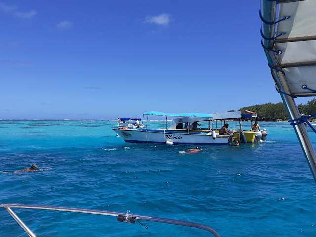 Wir waren im Preskil Beach und haben den Ausflug mit dem Glasbodenboot nach Blue Bay unternommen. Es ist ein schöner Ausflug und man sieht schon eine Menge Fische. In Blue Bay werden die Fische mit kleinen Stücken Brot angelockt und man fühlt sich wie in einer Badewanne voll mit Fischen.