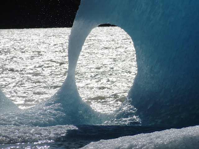 Der Gletscher Grey kalbt in den Lago Grey. Die Eisblöcke des Glacier Grey nehmen auffallend spektakuläre Formen an, da sie mit Höhlen und Schluchten durchsetzt sind und sich am Ende - bedingt durch eine Felseninsel - in zwei Arme aufspalten. Am sogenannten Gletscherfriedhof wehen stets starke Winde.