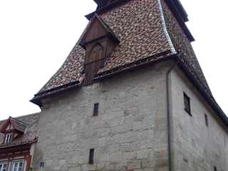 Der Glockenturm am Münster gelegen besticht insbesondere durch sein Dach, dass mit glänzenden Ziegeln gedeckt ist und der früher Glockenhaus genannt wurde.Es ist ein romanisches Gebäude, das um 1228 errichtet wurde und heute die Glocken des Heilig-Kreuz-Münsters in Schwäbisch Gmünd beherbergt. Er ist somit ein Campanile. Diese Form eines Glockenturms ist im schwäbischen Raum somit einzigartig.