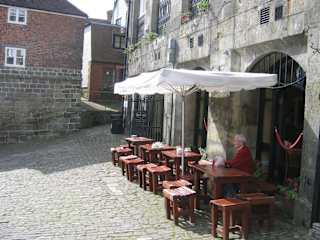 Auf dem Weg von Guildford nach Torquay machten wir einen zweiten Halt in Shaftesbury. Angeregt durch den Reiseführer wollten wir dort eine der bekanntesten Straßen des Landes sehen, den Gold Hill. Den fanden wir auch schnell in dem kleinen Ort . Der Gold Hill ist eine kopfsteingepflasterte Gasse, gesäumt von reetgedeckten Häusern mit markanten Schornsteinen, die sich an einem Steilhang ins Tal hinunter windet. Vom Cafe "Salt Cellar" aus hat man den schönsten Blick auf die Gasse und die malerische Umgebung. Bei besserem Wetter hätten wir wohl länger vom Cafe aus den Ausblick genossen, aber bei kühlem, regnerischem Wetter verspürten wir wenig Lust, uns auf die Terrasse zu setzen. Wir hatten auch keine Lust, das Klostermuseum zu besuchen, das die Historie des Ortes als Stätte eines der bedeutendsten und ältesten Benediktinerklöster aufleben lässt. Nach einem kurzen Streifzug durch High Street fuhren wir weiter bis Torquay.