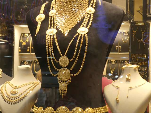 Nicht mit Dubai zu vergleichen. Kleine dreckige Straße mit Gold- und Silbergeschäften. Schmuckstil altmodisch. Gold ab 585 aufwärts.