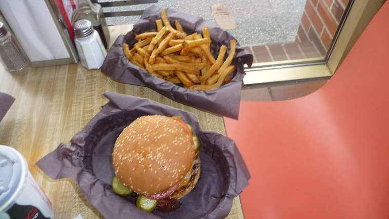 altmodisches Diner...außerhalb in Thornhill direkt an der Yonge Street...alle Speisen Hausgemacht und Frisch...Antiqitierte Einrichtung aus den Gründungsjahren- aber gepflegt und sauber...was für ein Burger- saftig und pures Rind...Zwiebelringe und Pommes aus frischen Zutaten...einen Abstecher, wenn man ein Auto hat, aus Downtown unbedingt wert...nicht günstig- zahlten für 3 Burger mit allen Extras, 1x Pommes normal, 1x Sweet Pommes, 1x Zwiebelringe und 3 Softdrinks ca. 50 Dollar- aber wirklich lecker...nur Bargeld- keine KK...ATM im Haus...