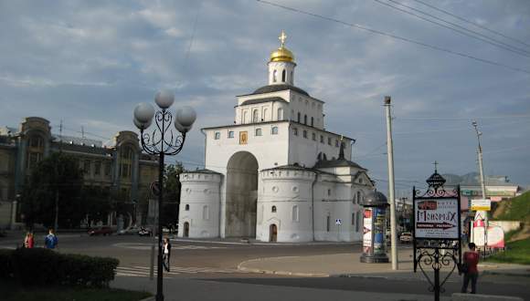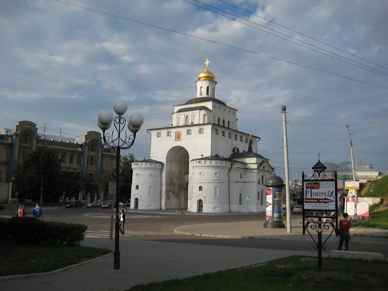 Goldenes Tor in Vladimir ist eine bedeutende Sehenswuerdigkeit von altrussische Architektur. Es wurde in 1164 Jahr gebaut. Das Tor wurde fuer Schutz gebaut, aber es hat an sich auch Triumphcharakter getragen. Das Tor hat Haipteinfachrt in reiscte teil des Stadtes ausgeschmuckt. Wegen Brande und Kriege wurde das Tor bis unsere Zeit mit grosse Umbau erhalten. (es gibt nur noch Teile die original sind).
