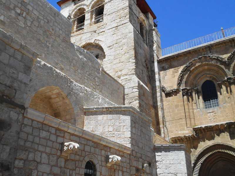 Der Besuch der Grabeskirche in Jerusalem ist ein Muss . Diese Kirche mit ihren versteckten Winkeln und unzaehligen Kapellen der verschiedenen christlichen Gruppen ist die Anstrengungung wert - haeufig ueberfuellt von grossen Gruppen die sich um den Golgotha Altar und um das Grab draengen und intensiv beten . Am besten in einer kleinen Gruppe von einem ausgebildetem Reiseliter gefuehrt .