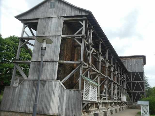 In Bad Kissingen wurde über 1000 Jahre hinweg Salz gefördert. Diese Salzförderung wurde jedoch 1968 eingestellt. Übrig blieb das Gradierwerk (Gradierbau). Dieses Gradierwerk befindet sich etwas außerhalb von Bad Kissingen, ca. 2,0 bis 2,5 km vom Regentenbau entfernt. Man kann vom Regentenbau aus schön und bequem zum Gradierwerk laufen. Der Weg führt vom Regentenbau aus über den Rosengarten und über die Salinenpromenade (meist an der Saale entlang) bis zum Gradierwerk. Eine andere Möglichkeit ist eine Fahrt mit einem Schiff, dem sogenannten „Dampferle“. Es gibt zwei dieser Dampferle, die im Wechselbetrieb zwischen Rosengarten und der Saline / Gradierwerk verkehren (Nachteil: diese Dampferle stinken fürchterlich, zumindest wenn man auf der Salinenpromenade unterwegs ist, ist dies mehr als störend). Im Gradierbau läuft das Salzwasser über aufgeschichtetes Reisig und dadurch wird die Luft mit dem Salz angereichert. Wir waren hier einige Zeit gesessen und sind auf dem Steg um das Gradierwerk gelaufen, dabei haben wir die gute Luft inhaliert. Wir haben richtig gemerkt, wie die Nase und die Lungen frei wurden – oder war das nur eine Einbildung?