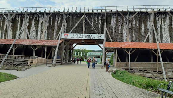 Schönes Gradierwerk, durch das man fast komplett spazieren kann. Kleine Erklärungstafel davor, zum schönen Marktplatz von Bad Sooden geht man nur 2-3 min.