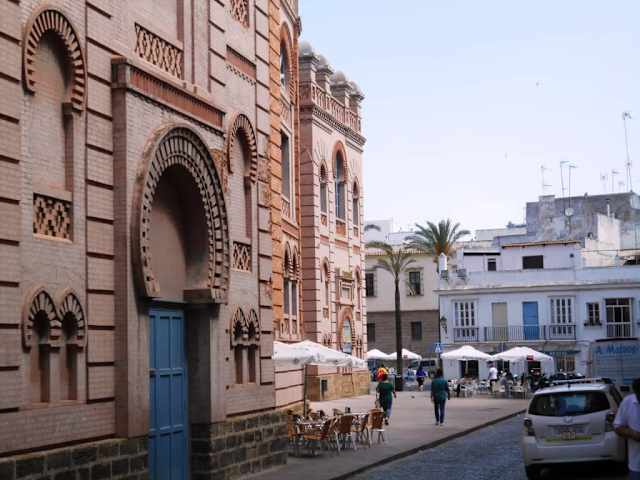 Das Theater am Plaza Fragela im Herzen der Altstadt mit rund 1200 Plätzen wurde Ende des 19./Anfang des 20. Jahrhunderts im sogenannten „Neo-Mudéjar“-Stil erbaut, der an maurische Architektur erinnert und den man häufig an großen öffentlichen Gebäuden wie Theatern und Stierkampfarenen aus dieser Periode findet. Das Theater ist nach dem Komponisten Manuel de Falla benannt, der in der Kathedrale von Cádiz begraben ist.