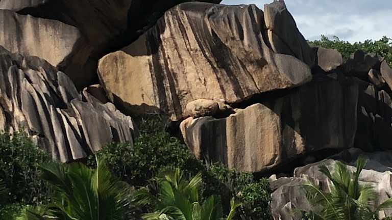 Toller Strand mit typischen Seychellen-Motiven
