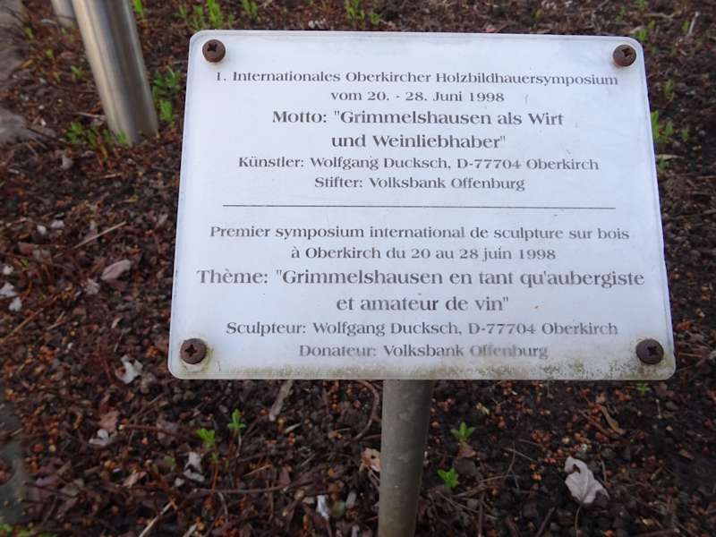Hans Jakob Christoffel von Grimmelshausen lebte im 17. Jahrhundert für fast zwei Jahrzehnte in zwei Ortsteilen von Oberkirch. Dort hat er große Teile eines Buches geschrieben, welches als wichtigstes deutschsprachiges Erzählwerk des Barocks in die Weltliteratur eingegangen ist. Am Platz steht eine Skulptur mit dem Titel "Grimmelshausen als Wirt und Weinliebhaber".