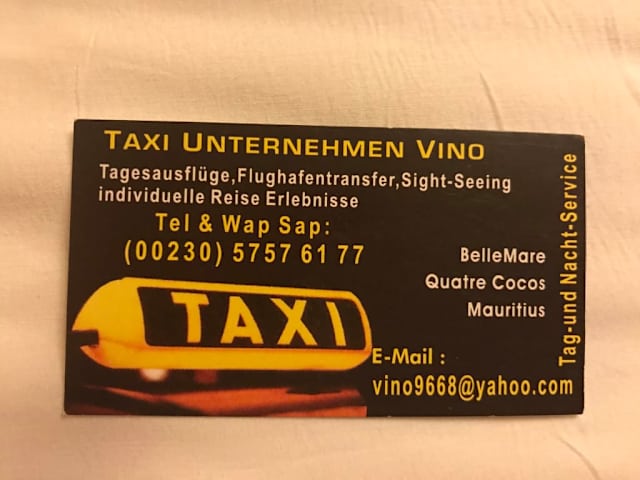Vino ist ein sehr höfflicher, freundlicher Mann der seit 20 Jahren selbständig mit eigenem Fahrzeug den Touristen seine Insel zeigt. Vorher hat er im Amber Hotel in Belle Mare gearbeitet. Sein Fahrzeug ist ein Toyota Premio, eine viertürige Limousine welche immer sauber und sehr gepflegt ist. Ist ist jeden morgen am Public Beach neben dem Veranda Palmar Beach Hotel anzutreffen. Er spricht sehr gut deutsch, welches er im Laufe der Zeit mit den Gästen gelernt hat. Während der Ausflüge erzählt er viel von Land und Leute und beantwortet einem jede Frage. Bei den Sehenswürdigkeiten wartet er am Auto, er ist schließlich Taxifahrer und nicht Touristenführer. Ich denke da bräuchte er eine spezielle Lizenz für. Aber er erklärt einem vorher das wichtigste. Auch wo man herlaufen soll und wo man ihm am Ende findet. Das ist eine tolle Art einen Ausflug zu machen, da man nicht mit einem Bus voll Gästen alles gemeinsam macht sondern sich Zeit selber einteilen kann und auch nehmen kann wie man es möchte. Ebenso kann man Sachen auslassen oder dazu packen. Eine ein Tagestour kostet ca 80 Euro, egal wieviele Gäste mitfahren. Eintrittsgelder und Essen/Getränke natürlich nicht mit inbegriffen. Wir waren zu viert. Macht 20 pro Person. Bei der Südtour kommen noch ca 6 Euro Eintritt Chamarell dazu. Wenn man essen geht noch vielleicht 10 Euro. Macht 36 Euro. Über Reiseveranstalter kostet der Ausflug 86 oder 87 Euro. Wir haben mit ihm die Südtour, die Nordtour und einen Ausflug nach Flacq(Wochnemarkt, Supermarkt, Einkaufszentrum) gemacht. Alles TOP. Immer absolut überpünktlich, sehr freundlich und sehr besonnen gefahren. In der letzten Woche ist er nochmal mit mir alleine in den Norden gefahren. Cap Malheureux, Grand baie, Hindu Tempel in Triolet. Dort war auch das Hauptziel des Ausflugs, der Heliport von Corail Helicopters. Aufgrund der vorherigen Ausflüge zum Freundschaftspreis von 50 Euro. Das fand ich sehr nett. Ich kann Vino nur wärmstens weiter empfehlen.