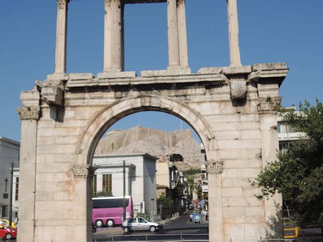 Am Rande von Pláka findet man das Hadrianstor. Rundum brodelt der Verkehr der modernen Metropole aber das Tor bildet den Eingang in eine andere Welt, nämlich das Gelände mit dem antiken Tempel des Olympischen Zeus.