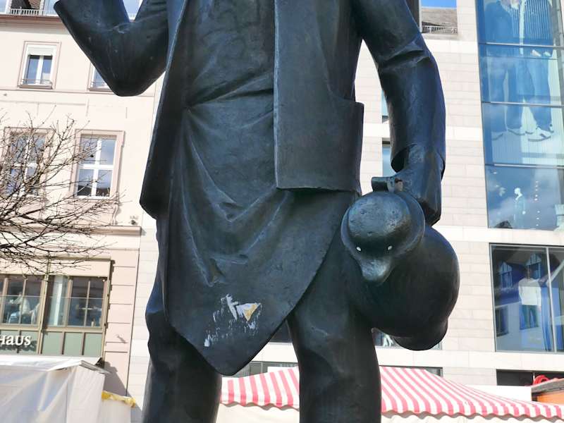 Seit 1977 befindet sich auf dem Oberen Markt von Würzburg, unmittelbar neben der Schönbornstraße, der Häckerbrunnen. Auf einem viereckigen Sockel, aus dem vier Wasserausläufe ragen, steht der Häcker (Weinbauer) mit Hacke und Mostbartel (Mostkrug). Der Häckerbrunnen ist inzwischen ein beliebter Treffpunkt und ist auch vom Marktplatz nicht mehr wegzudenken. Auch wenn wie jetzt im Februar kein Wasser aus den Wasserausläufen kommt, so ist er doch auch jetzt ein beliebtes Fotomotiv. ÜBRINGENS: seit August 2024 ist der Häckerbrunnen ein Trinkwasserbrunnen und bietet somit die Möglichkeit, dass man frisches Wasser kostenlos trinken kann (was besonders in den Sommermonaten sehr willkommen ist). Wie es heißt, wird die Wasserqualität des Wassers regelmäßig überprüft, womit sichergestellt werden soll, dass das Brunnenwasser bedenkenlos getrunken werden kann. ANGABEN zum Wasser / Trinkwasser Stand Februar 2025, unter Umständen sind diesbezüglich wieder Änderungen möglich.