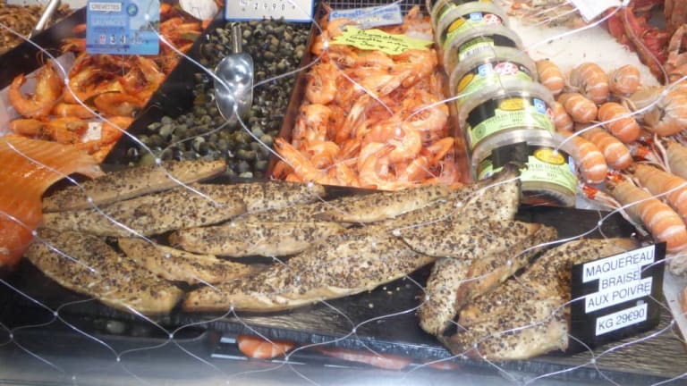 Nach dem Besuch der Kirche Sainte-Jeanne d`Arc machten wir noch einen Bummel durch die Markthalle Les Hallettes. Die Markthalle befindet sich wie die Kirche Sainte-Jeanne d`Arc am Platz Vieux-Marche. Rouen und das Seine-Tal sind in der Normandie für die Qualität und Vielfalt ihrer Märkte bekannt. Die Markthalle Les Hallettes ist nach Aussage unseres Reiseleiters eine der bekanntesten Markthallen in Rouen. Auf dem Markt wurde alles angeboten was die französische Gastronomie auf der ganzen Welt berühmt gemacht hat. Die Normandie ist bekannt in Frankreich wegen ihren Käsesorten, ihren Fischen und Meeresfrüchten, ihrem Cidre und ihren regionalen Spezialitäten. Der Cidre stammt ursprünglich aus der Bretagne und der Normandie und wird daher auch häufig französischer Apfelwein genannt. Natürlich wurden u.a. auch Gemüse, Obst, Fleischwaren, Hefegebäck und Blumen angeboten. Markthallen gibt es fast in allen französischen Städten und sie sind typischerweise der Ort, wo Einheimische einkaufen und man Waren von ausgezeichneter Qualität findet. Wir waren begeistert von dem tollen Angebot in der Markthalle.