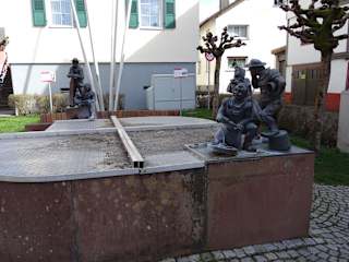 In der Nähe der Pfarrkirche steht der sogenannte Handwerkerbrunnen. Im Winter leider ohne Wasser und zum Teil abgedeckt. Der Brunnen stammt aus den 1990ern. Hier wurden traditionelle regionale Berufe abgebildet - Holzfäller, Wagner, Bauer und eine Frau "Heiberwiebli" welche für die Tradition des Heidelbeersammelns steht. Schöne Figuren zum Fotografieren.